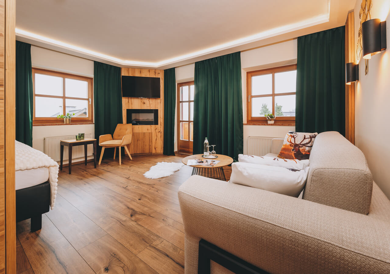 Ein Zimmer der Extraklasse – für alle, die Stil, Raum und alpine Eleganz zu schätzen wissen.