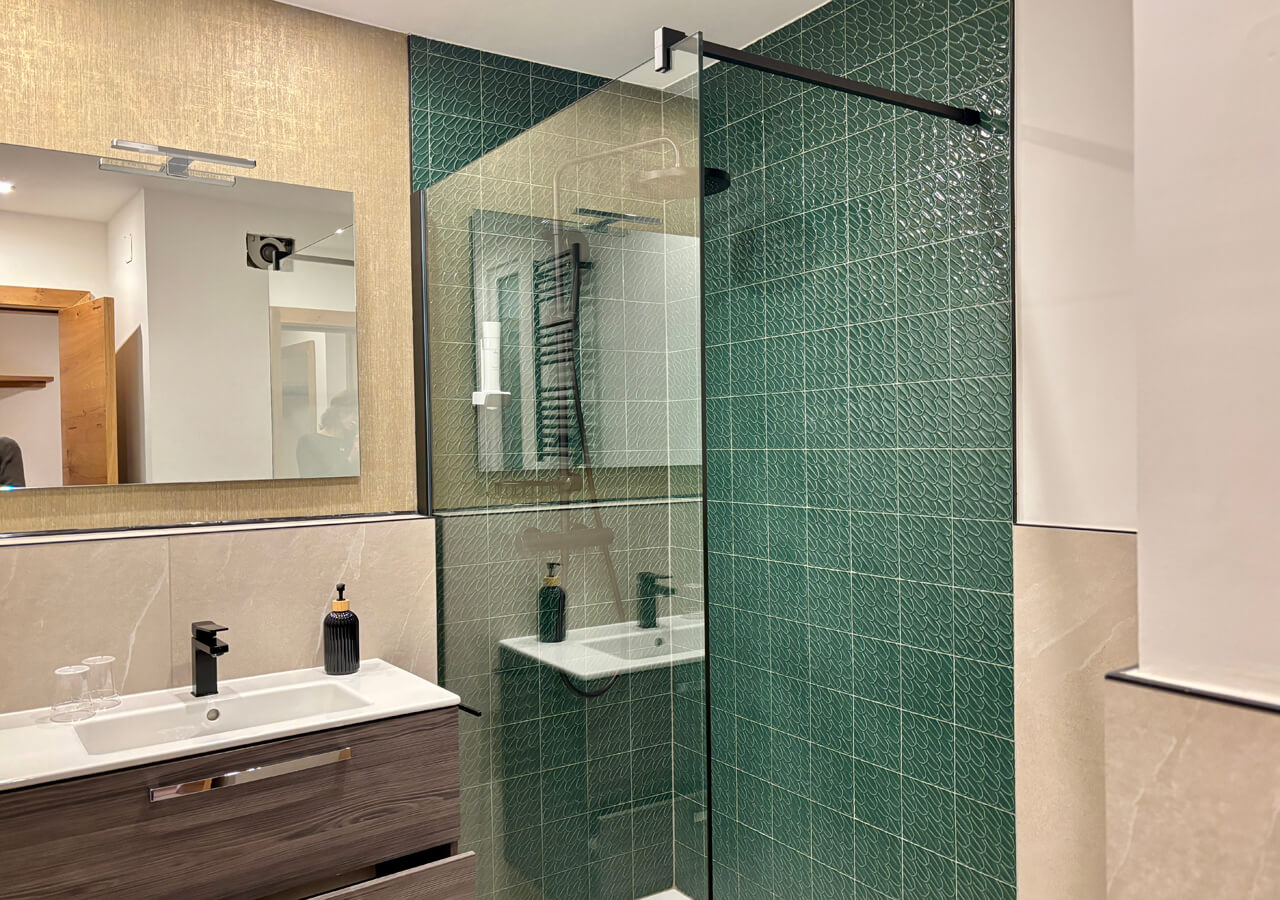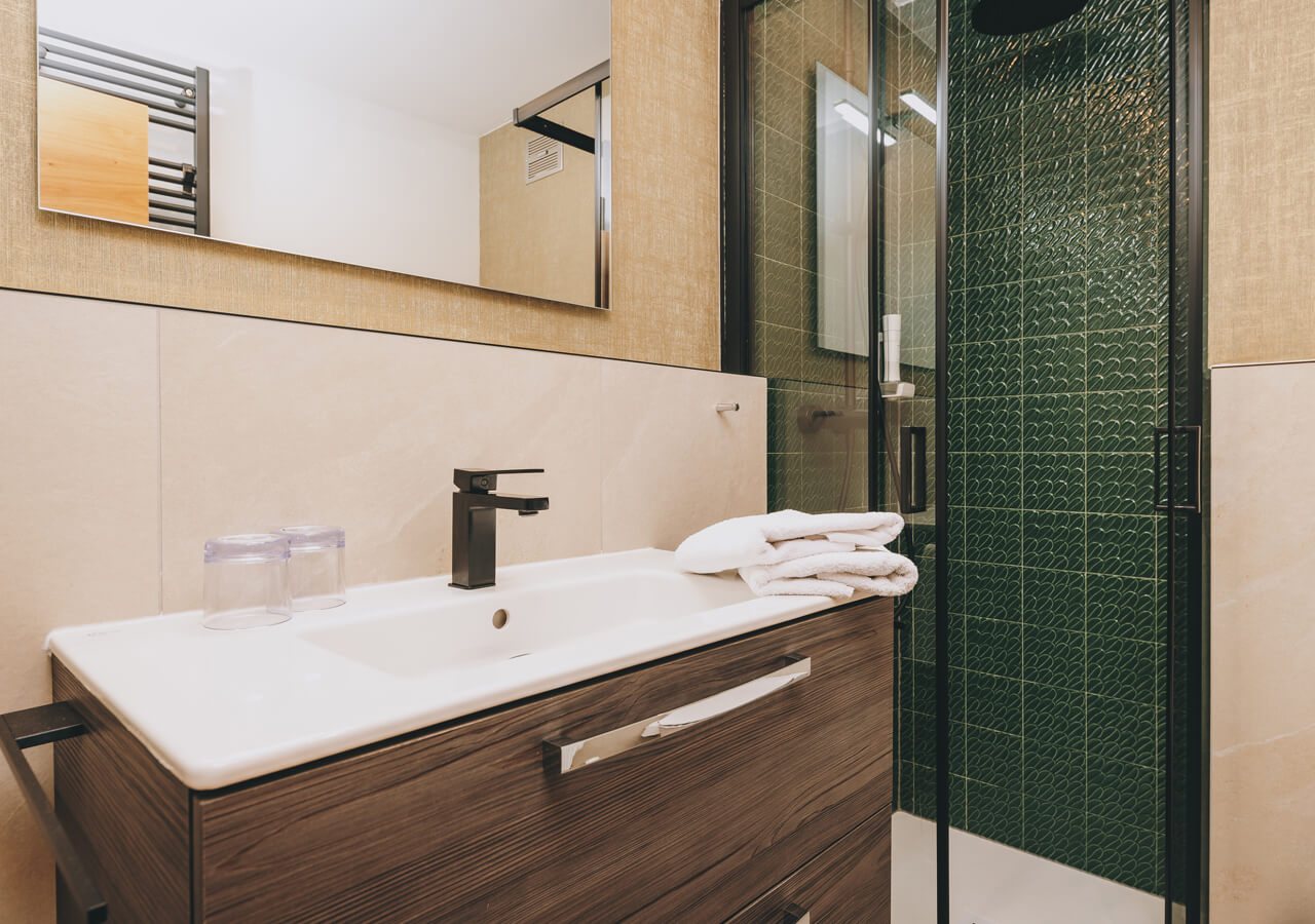 Das neu gestaltete Badezimmer überzeugt durch elegantes Design, erstklassige Ausstattung, Föhn und Zimmersafe. Für behagliche Stunden sorgt der elektrische Kamin, während eine komfortable Schlafcouch für zwei Personen zusätzlichen Platz und Wohlgefühl bietet.