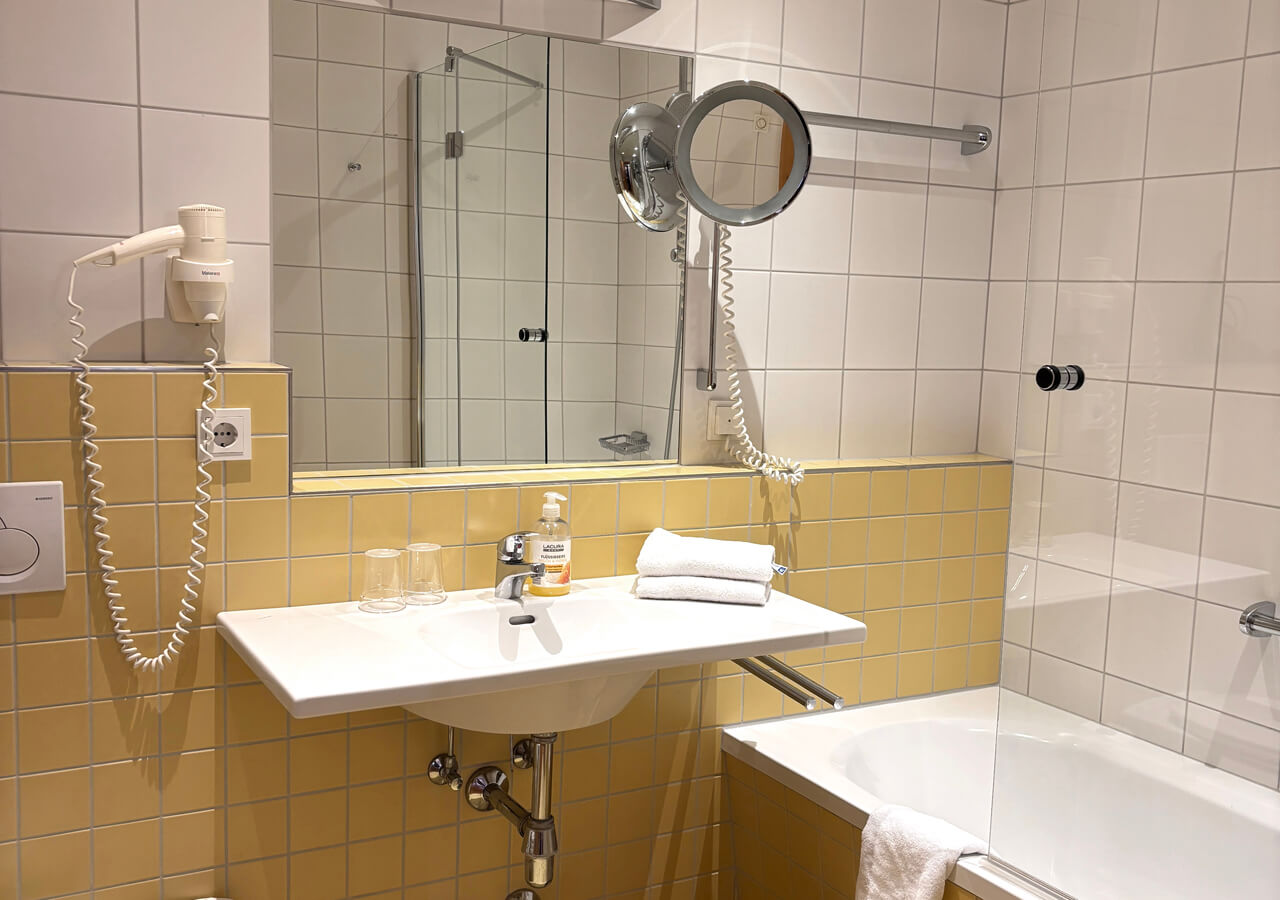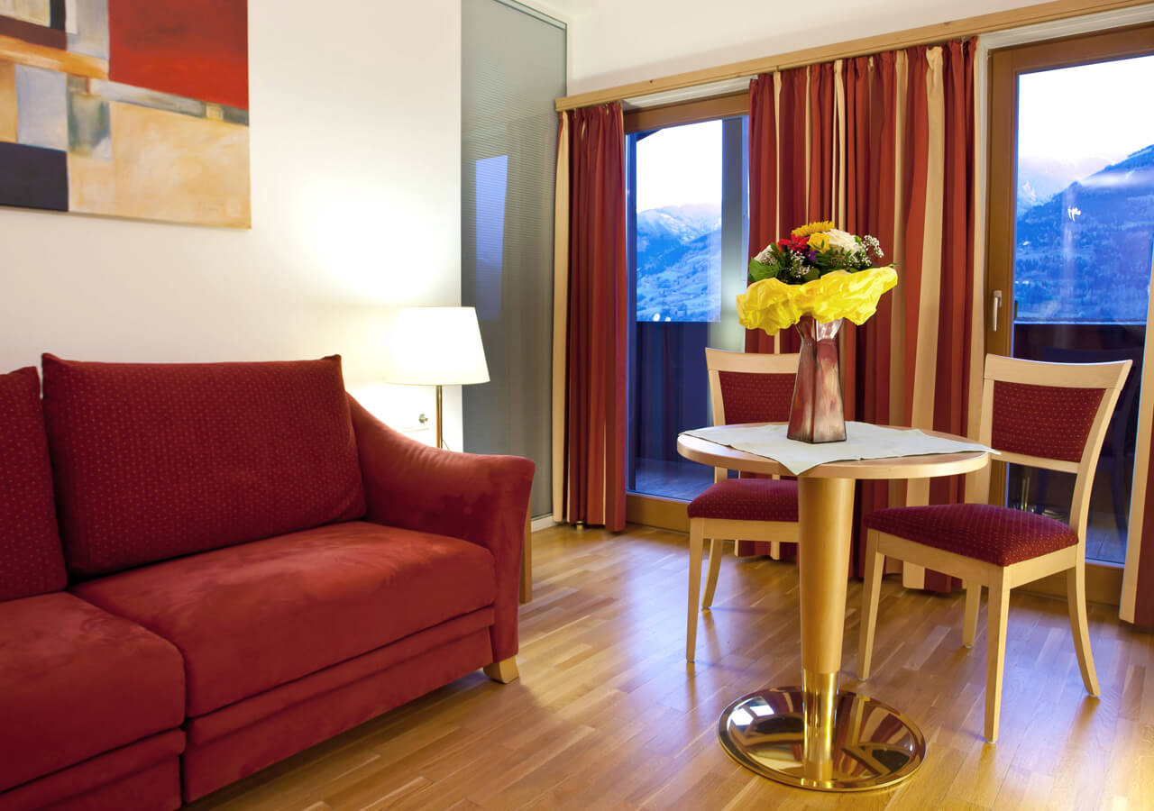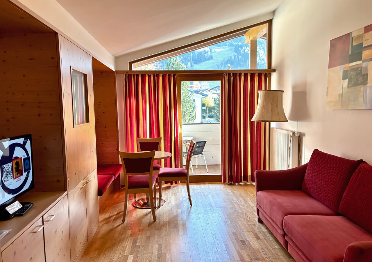 Der getrennte Wohn- und Schlafbereich bietet eine Schlafcouch für zwei Personen sowie zwei TV-Geräte für komfortables Wohnen. Das Studio verfügt über zwei Bäder – Badewanne/WC und Dusche/WC – sowie Telefon, Kabel-TV, Minibar, Zimmersafe, Föhn und Schreibtisch.